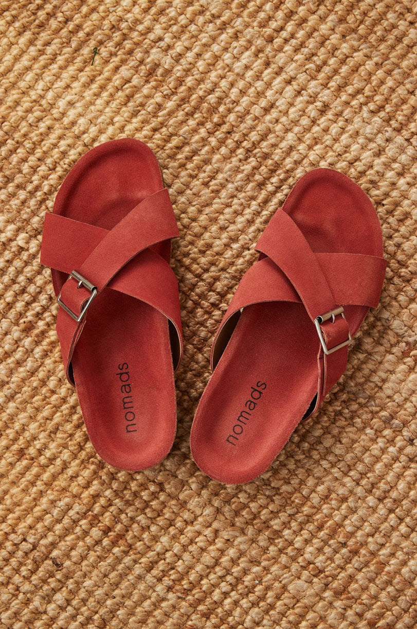 A timeless style, this classic cross-over soft Suede sandal is an easy pairing with so many of our outfits this season. Sitting on a cork footbed with rubber sole the wide cross-over straps offer an adjustable buckle fitting and are dyed in our Sand or Tuscany colourways using low-impact dyes.Find out more about LWG Suede here >>Made by our fair trade partners, in line with our ethical trading policy