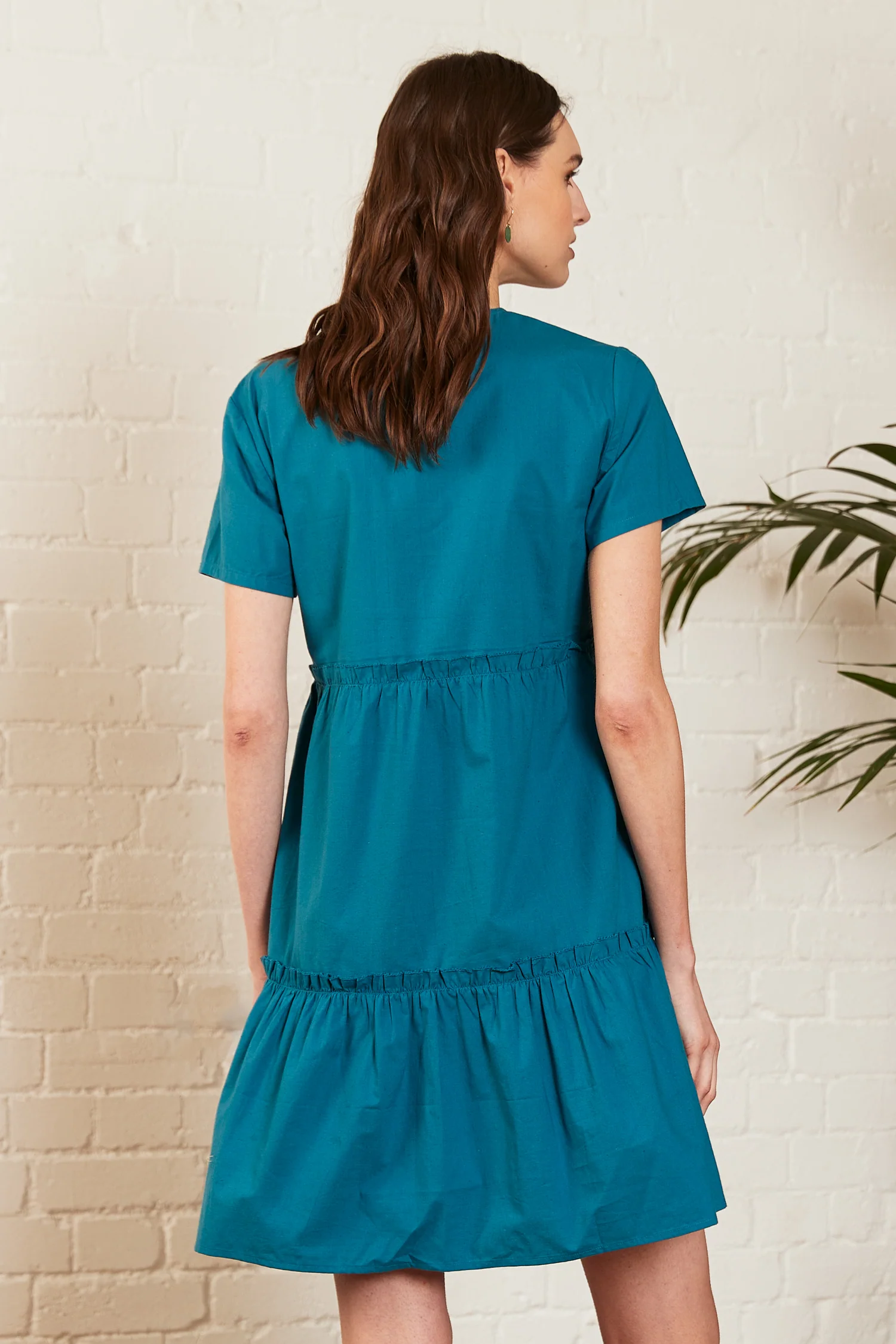 A contemporary tunic dress with gathered tiers and roomy pockets - making every day dressing effortless. Short sleeves give your shoulders a little coverage and our sumptuous ocean colourway can be sure to leave you dreaming of the sea. If prints are more your thing, you can find this style in our luscious jungle print.