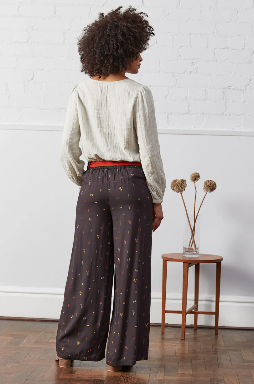 Crafted using super soft, 100% woven Lenzing Ecovero, these contrast tie belt trousers will be ones you'll reach for over and over.Ā This style is builtĀ into our woodland capsule because of the dainty mushroom print and earthy tones, making this piece easy to pair with the rest of the collection. A flattering style that comes complete elasticated waist, belt loops, side pockets for practicality and has been made with a wide leg for comfortable and modern look.