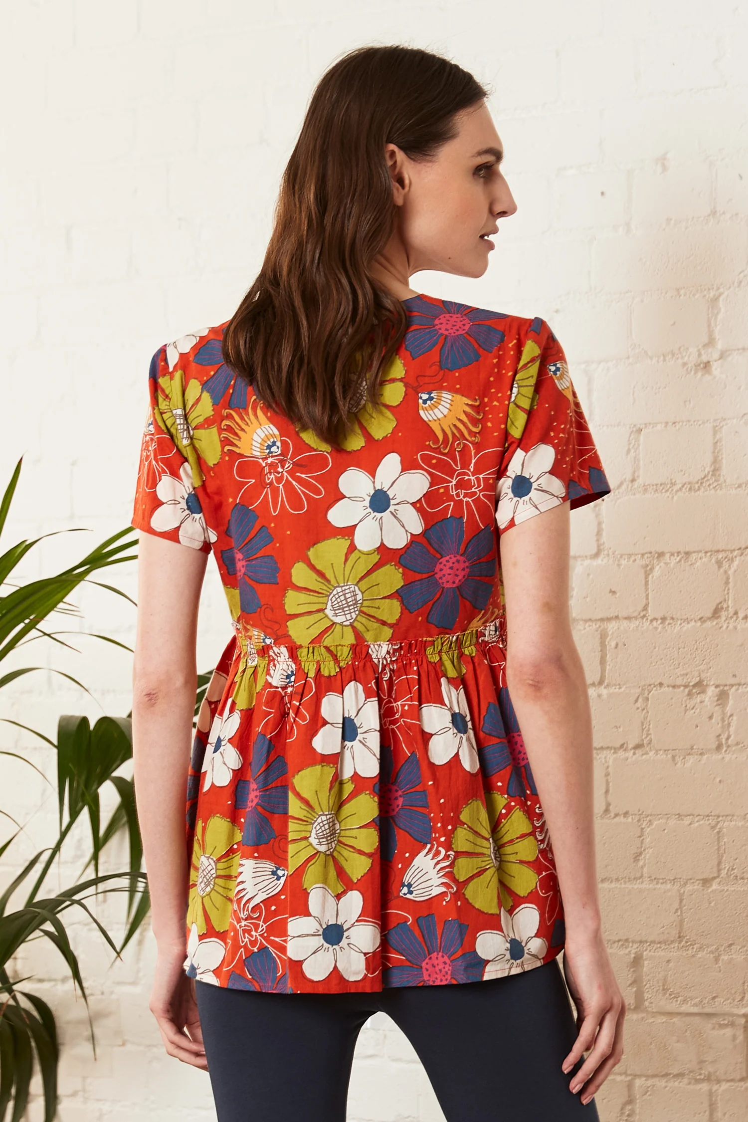 A funky new style, this top is colourful and fun. A contemporary piece with a gathered waist will surely have you standing out in the crowd. Crafted using our new fabric: 100% cotton poplin.Ā